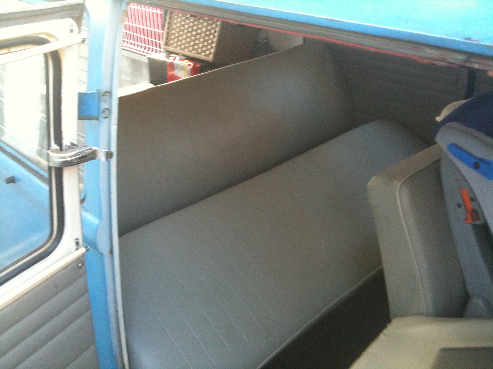Z-bedはアクションとして、座面を二列目側へ持ち上げるように引き上げる→背もたれの後ろの止まっているか金具を2つくるくるとゆるめる→背もたれを倒す、、、で終わりです。